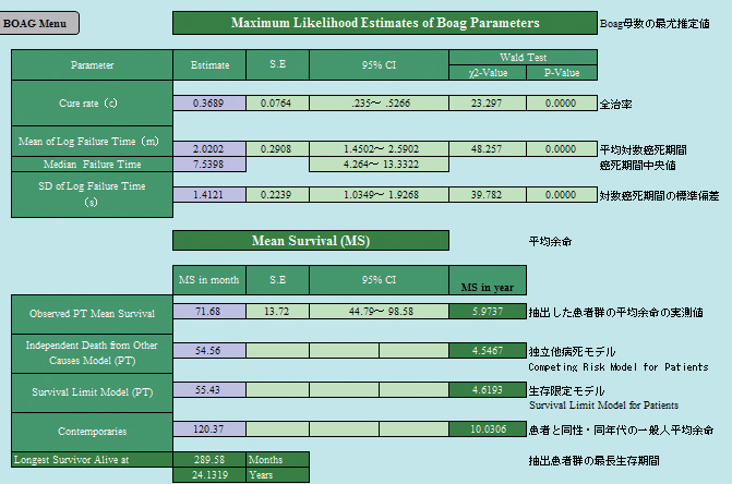 Boagモデルによる癌の生存分析(前谷俊三博士提供)