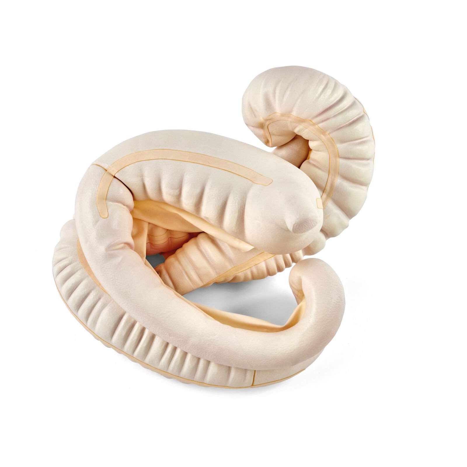 ポンプで空気圧を調整可能なゴム製の胃腸管です。解剖学的に非常に正確に再現。左右の腹側結腸,左右の背側結腸,盲腸,3mの小腸。