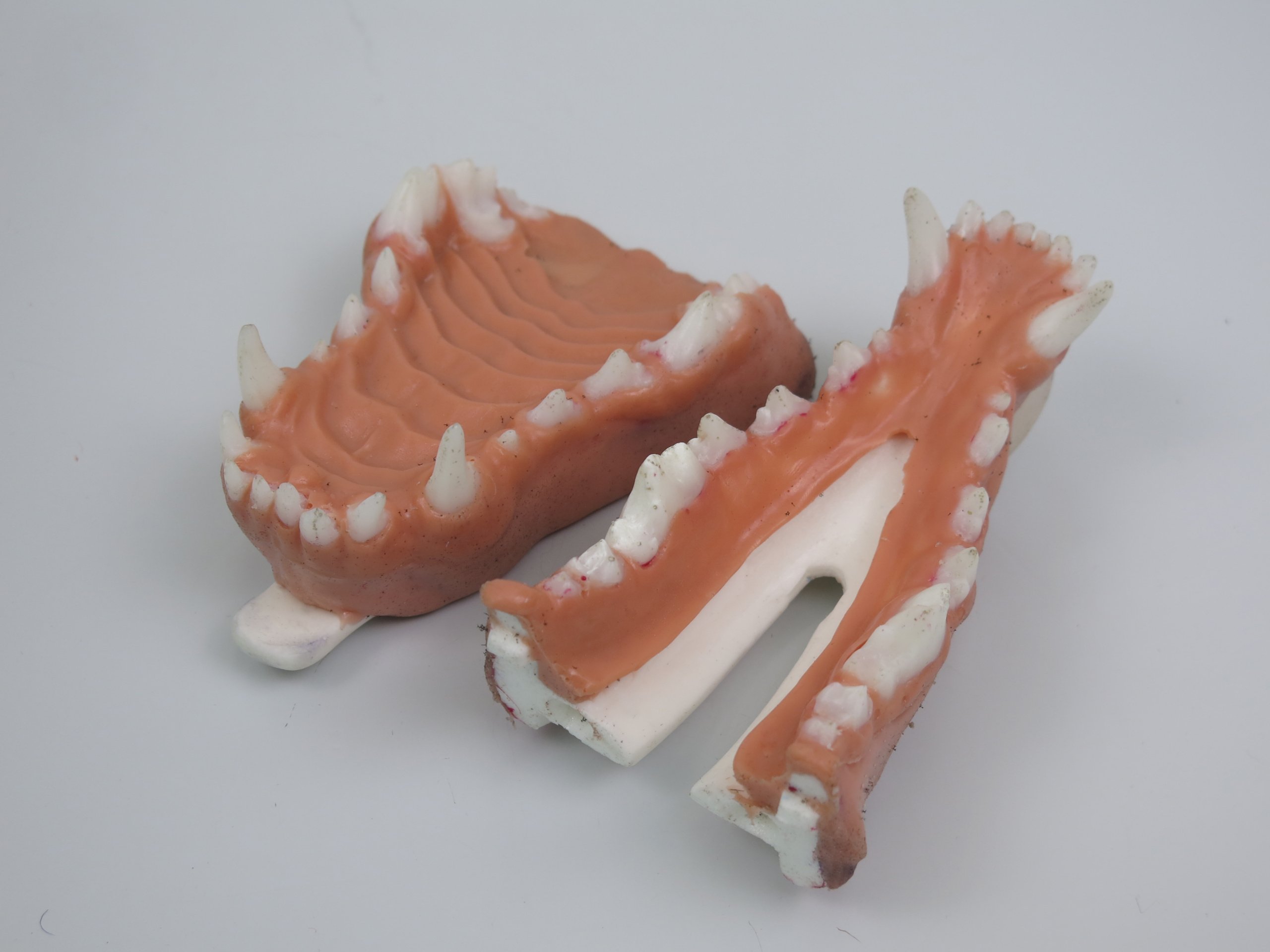 イヌの頭頚部を再現したシミュレーターで,抜歯,歯肉切開・縫合などの外科手技,気管挿管,歯周プロービング,神経ブロックのトレーニング,および歯の解剖学的構造の学習に使用できます。
