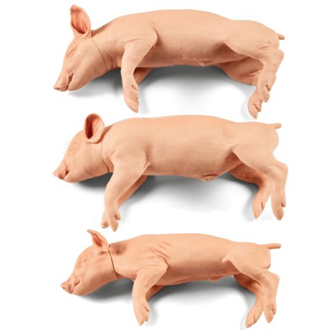 リアルな感触と重量を再現した,スタンニングトレーニング用の子ブタモデル3種です。