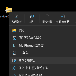 *展開方法例:zipファイルを右クリックし、「すべて展開」