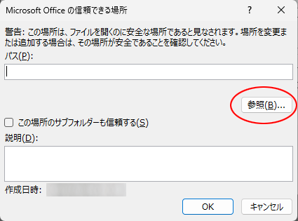 ウィンドウ内にある「参照」ボタンをクリックします