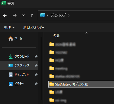 2.で保存したStatMateのフォルダ(StatMate-完全版 / アカデミック版)を開き、