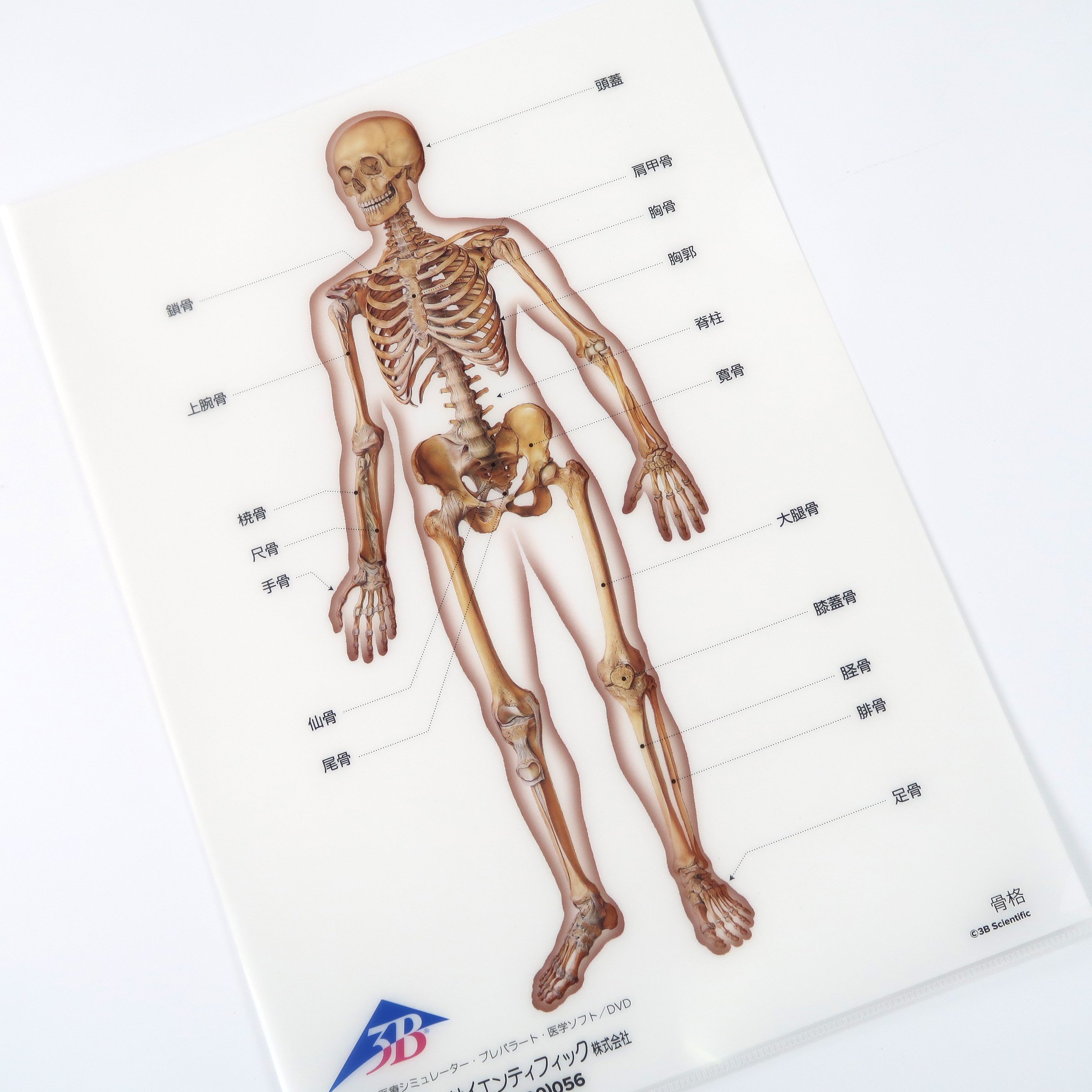 人体の解剖学的構造を詳細に描いたA4サイズのクリアファイルです。各ファイルには,主要な人体部位が精密に描かれており,それぞれの部位の名称が記載されています。クリアファイルに紙を挟むことで、テキスト部分を隠すことができるので、ちょっとした暗記ドリルのようにも楽しむことができるユニークなクリアファイルです。