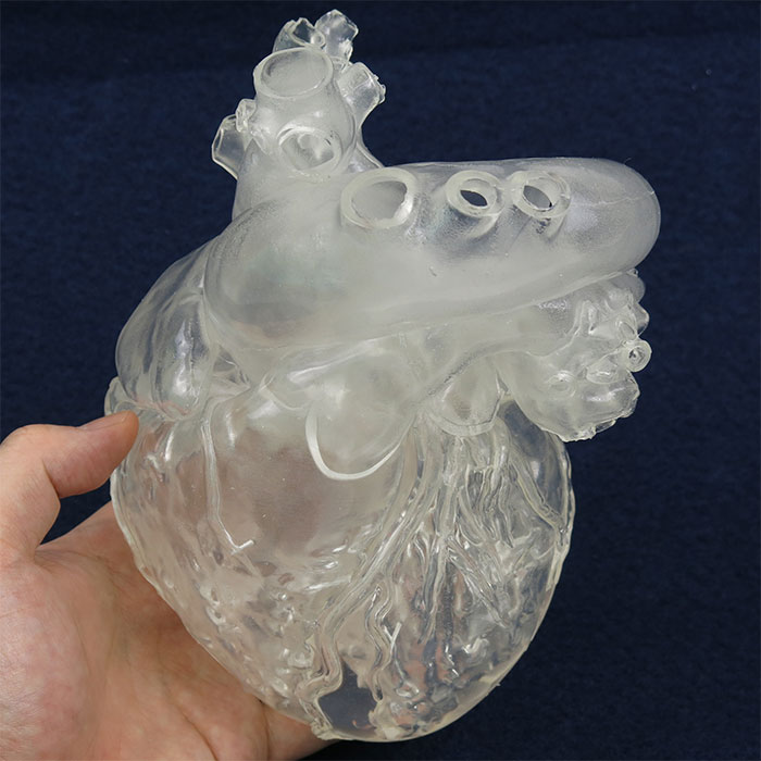 冠状動脈・静脈の空洞,表面・内壁に至る患部までリアルに再現,手術前のシミュレーションとして,実際にメスでの切開が可能です。