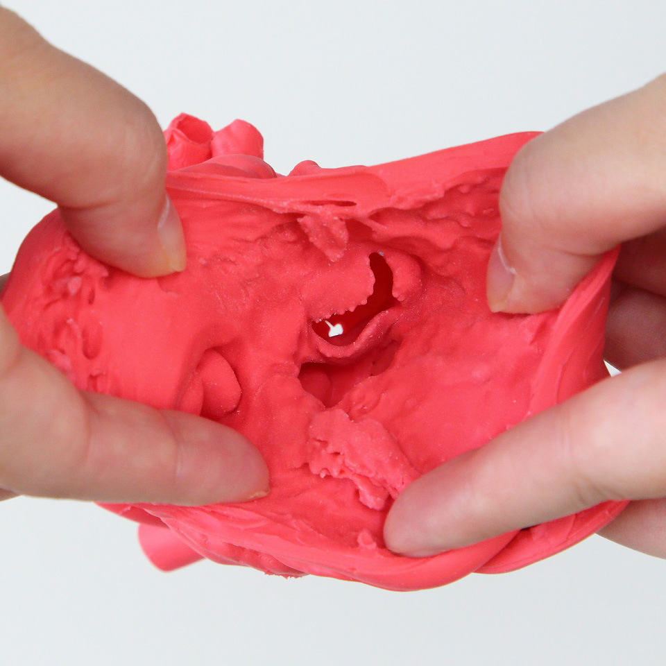 軟質素材なので心臓の内側を広げて観察できます。