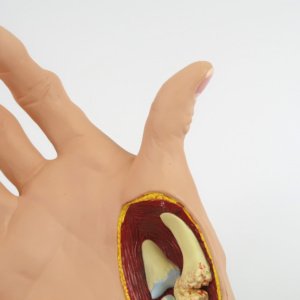 変形性手関節症の説明に適した実物大の手のモデルです。