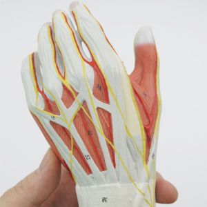 左上肢と肩の一部の浅・深層筋,腱,血管,神経,骨の構成等を詳細に再現し,5個の筋肉を取り外せます。スタンド付。