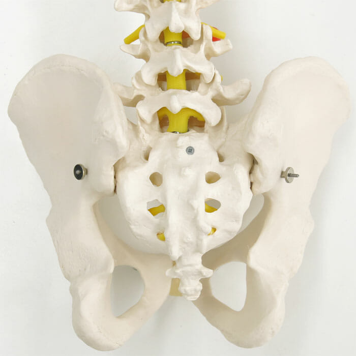 芯部に金属製のフレキシブル管を加えることで,曲げる際のしっかりとした手応えと耐久性を与えました。男性骨盤,後頭骨,椎骨動脈,脊髄神経根,L3・4間にヘルニア病部が付いています。学校などの,特に活動性の高い使用に最適なモデルです。