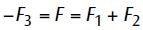 -F3 は,釣合っているという条件から,F1+F2 と等しくなります。