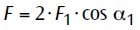 力F1とF2 がF3 に対して対称に働いているときは(4)式は次のように単純な形で表されます。(図4 参照)