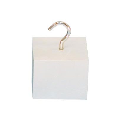 浮力を測定するための鉄ブロックです。フックでバネばかりに吊り下げ,ブロックを水中に沈めることで浮力を測ります。