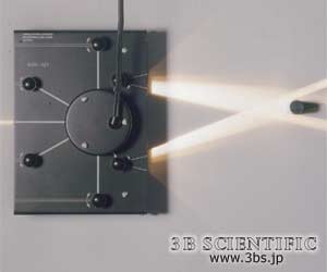 投影,反射,回折,全反射,プリズムにおける最小偏向角度,鏡やレンズの焦点位置の測定,画像の誤差などの幾何光学の実験をホワイトボードや磁気ボード上で行い,観察するための基本セットです。