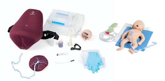 - スクイーズバルブ一式(泣き声,自発呼吸による胸郭上下,臍帯拍動の再現用)