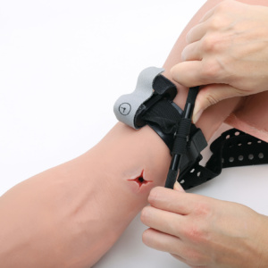 戦術的第一線救護(TCCC)や民間人救護のトレーニングに適した上肢止血トレーナーです。リアルな創傷部を持ち,手動ポンプの操作により個々の創傷からの静・動脈出血を再現できます。人が着用して使用することもできます。