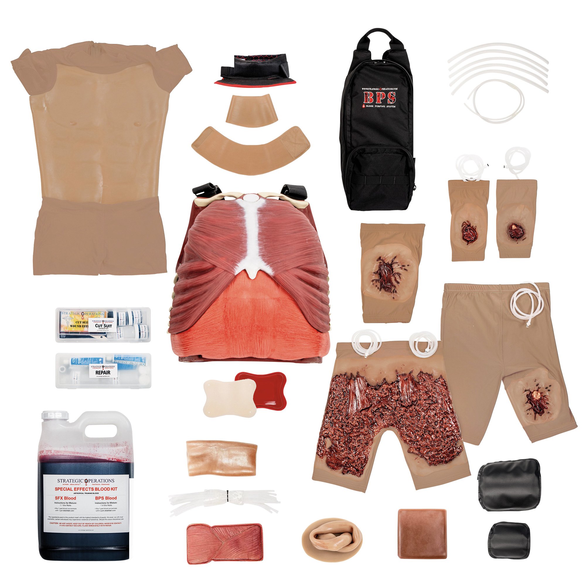 戦場での死因の主要3要素(1.制御不能な出血,2.気道閉塞,3.緊張性気胸)の訓練で,TCCC/EMS カットスーツは着用した人間に対して医療従事者が実際に処置を行うことを可能にします。