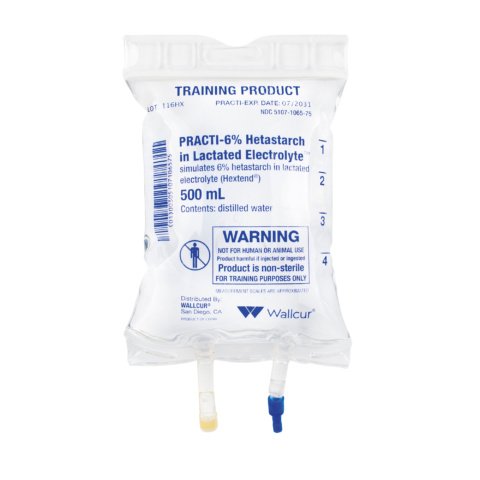 実際にバッグの中に入っているのは蒸留水です。シミュレーショントレーニングにおいて,穿刺と液体受け入れが可能なマネキンやトレーニングモデルに安全に点滴を行えます。