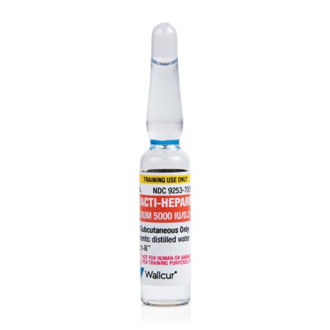 模擬薬として蒸留水が入っている安全な実習用教材です。薬剤の確認,投与量の計算,アンプルの開封,薬剤の吸い上げ,吸い上げた薬剤量の確認など,アンプル取り扱いに関わる一連の手順を練習できます。
